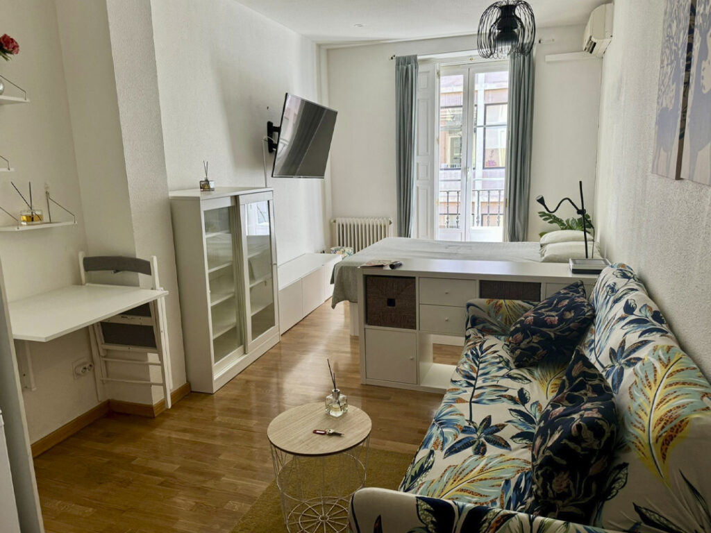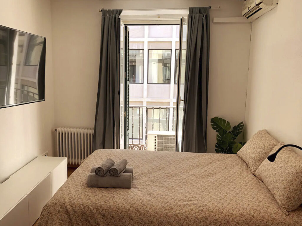 A un minuto de Gran Vía, en pleno corazón de Madrid, se encuentra este magnífico apartamento con una habitación con cama doble, un espacioso baño reformado, cocina americana y dos balcones con vistas a la calle Desengaño. Equipado con TV (con Netflix, HBO y Amazon Prime), menaje de cocina, sábanas y toalla de primera calidad.